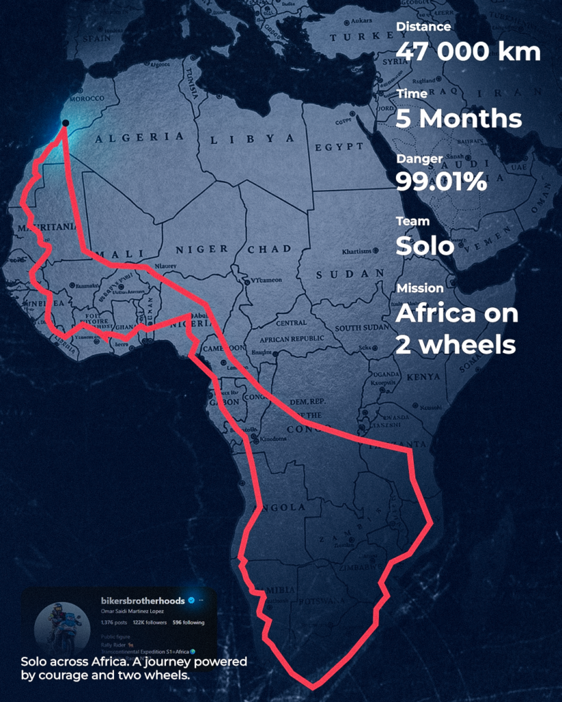 Depuis le Maroc, je traverse l’Afrique par la route, sur plus de 47 000 km, pendant 8 mois, à travers des pistes, des zones reculées et des peuples oubliés.